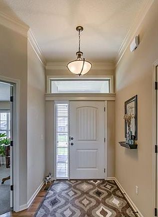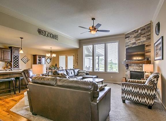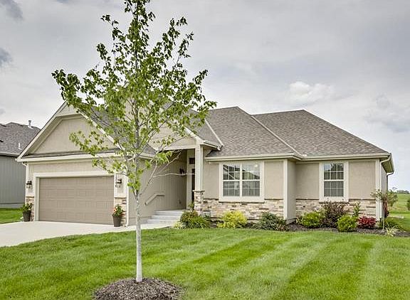 Nearly new and sought after Ranch in Staley Community. Kitchen with all the amenities, gas range, granite tops, walk in pantry, island and built wine rack. Hardwoods in the entry, kitchen and breakfast room. Walk out to covered deck plus extended patio, beautifully landscaped. Master Suite with tiled shower, his/her granite sinks. Lower level finished Family Room with plenty of room for table, games, media area - make it your own! Cul de sac lot. HOA includes lawn maintenance and snow removal. Come home and relax!