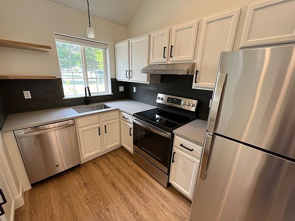 Don't miss this beautifully renovated 2 bed/2 bath unit located in a duplex on a quiet cul-de-sac in NE Bend convenient to St. Charles Hospital, the Forum Shopping Center and more. Custom finishes and high end fixtures throughout with the ground level featuring plank flooring, tall vaulted ceilings over an open kitchen/living layout, French doors leading to the back patio and fully fenced back yard, first bedroom with sliding glass door leading out to backyard, full bathroom and a laundry closet with washer & dryer included. Large master suite on the second level with attached full bath and custom tile work. Unit features a mini-split providing heat and A/C. Backyard also features a large storage shed and two exterior storage closets. Water & sewer utilities included as well as front and back yard landscape maintenance. Tenant responsible for all other utilities. One year initial lease term. No pets. Contact our office for information on showings. Showings for occupied properties may be limited to one member of the approved applicant's party. All of Mountain View Property Management properties are non-smoking. The rental listing, availability and security deposit amount are subject to change without notification. The information posted is deemed reliable, but not guaranteed. Professionally Managed by Mountain View Property Management Inc. Licensed in the State of Oregon. M.V.P.M. screening guidelines appear once the "Apply Now" tab has been selected. Please review them before submitting an application. Please do not disturb our tenants. Thank you.