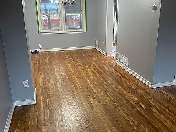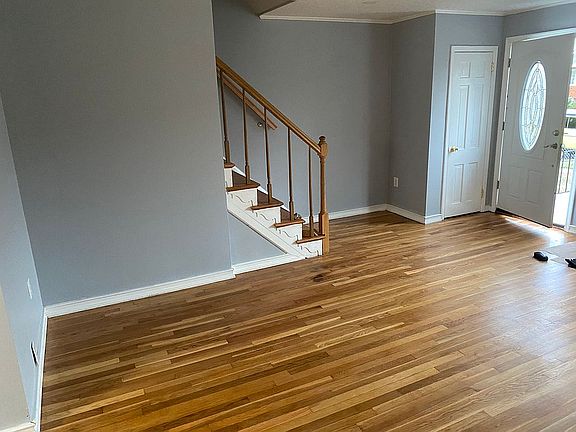 Clean and well-maintained home in Country Ridge with more than 1500 square feet of living space. Walk in to beautiful hard wood floors in an open concept living/dining room layout that flows into updated kitchen with natural wood cabinets, gas stove, stainless steel microwave and refrigerator, and new sink. Slider off kitchen to lovely, quaint covered porch with screened in patio space, overlooking fenced in back yard. Three spacious bedrooms all with ceiling fans. Finished basement. Parking pad in back for convenience.