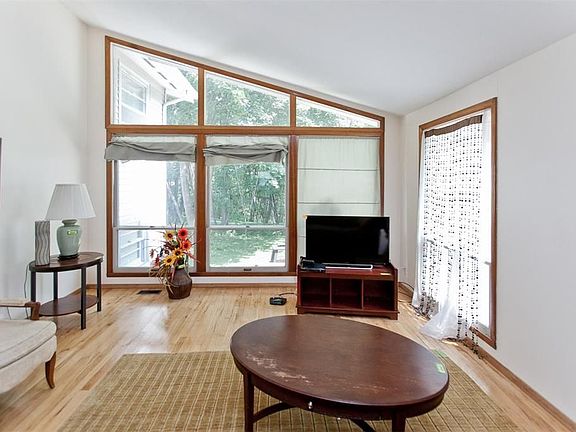 Price improved!! Wonderful updated and well-maintained home! The unique and fun floor plan features a newer kitchen with granite countertops, breakfast bar, and stainless appliances, vaulted family room with hardwood floors and great views, and a rare 4 bedrooms on one level! Lower level could be used as a living room or rec room. 2 car garage. Outside features a large patio overlooking a private wooded backyard oasis!