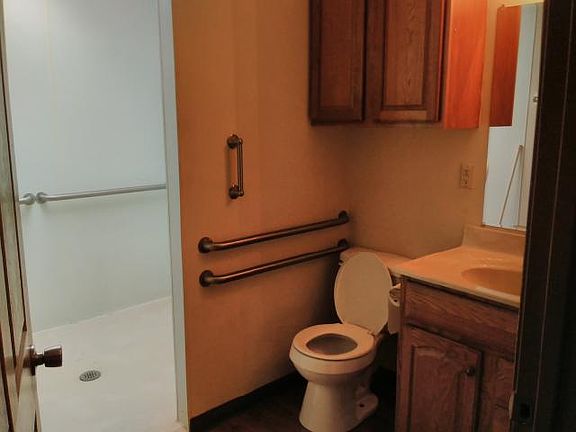 Handicap accessible! Ramp into front door. Handicap accessible bathroom/shower. Has 1 car garage. Laminate flooring throughout, fresh paint, back deck. This unit is part of a 4 unit building. Absolutely no smoking No pets Washer/dryer hookup in unit. Landlord mows lawn. First month's rent and $625 refundable deposit due at signing. Water and sewer included. Tenant pays electric and trash.