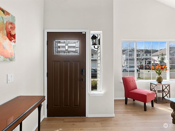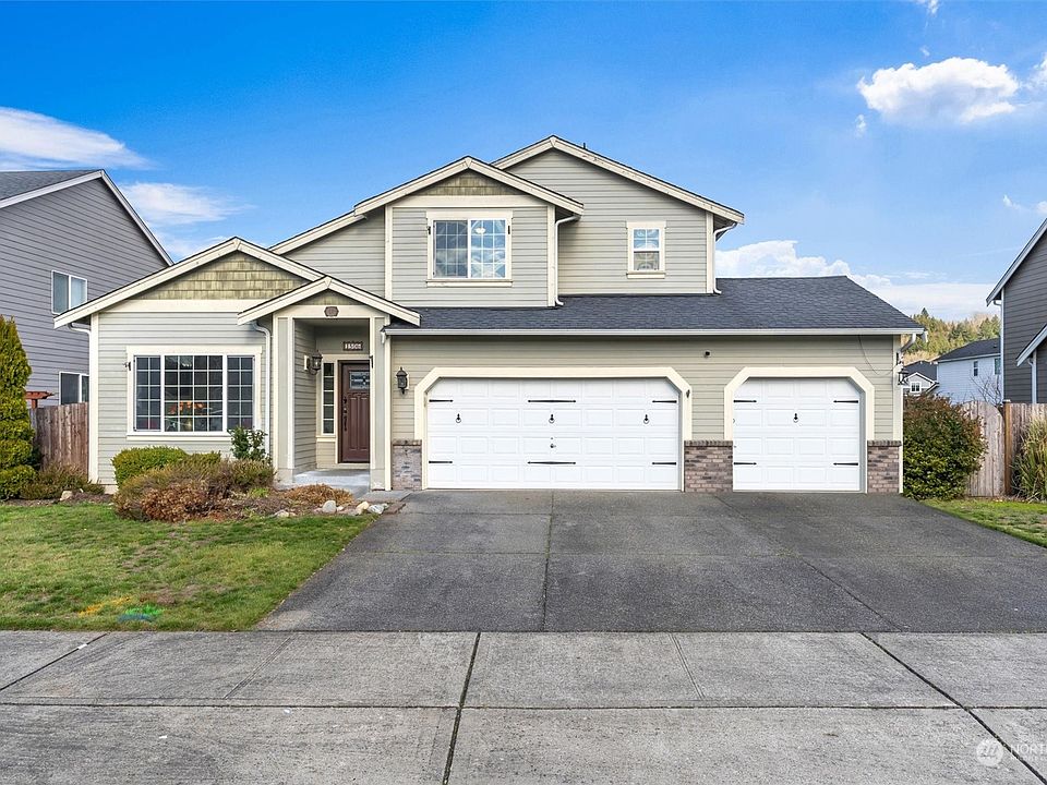 Make yourself at home in this charming 4 beds 2.5 bath beauty in the desirable community of River's edge. Large family rm greets you upon entry with an open concept living from the living rm to the kitchen. Main flr boasts a bedrm w/ french doors w/c is currently used as an office. Freshly painted interior, brand new vinyl plank flooring all through out the main flr & brand new carpet on the 2nd flr. All SS appliances and quartz countertop kitchen. Primary bedrm on the 2nd flr with 5 piece ensuite bath & walk in closet. 2 more bedrms on the 2nd flr with a jack & jill bath. This home features a 3 car garage and a large backyard with hot tub. Minutes to amenities in the quaint town of Orting incldng shopping, schools, trails and Carbon river.