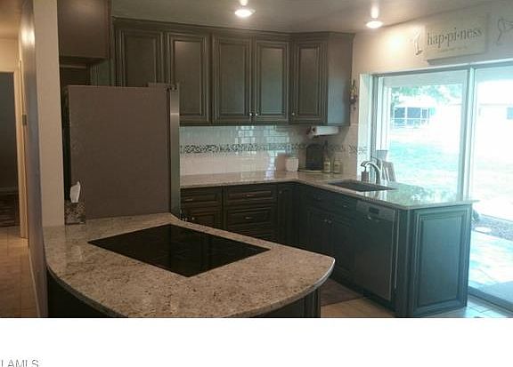 Cape Coral remodeled gem shows like a model with designer quality gourmet kitchen! ALL ASSESSMENTS IN AND PAID! Convenient, central location just west of Del Prado, close to shopping, restaurants, and bridges. Every inch of this lovely home is move in ready with fresh, neutral decor, all tile flooring, 2 updated baths, and spacious master. Extra large SUNLIT lanai overlooking roomy landscaped fenced backyard with mature trees and plenty of room for a pool or expansion. Extras include a two car garage, guest bedroom, brand new stainless appliances and furnishings are negotiable too! Fantastic value, location, upgrades, and price! Easy to show and easier to close! Make your appointment to see this find today!