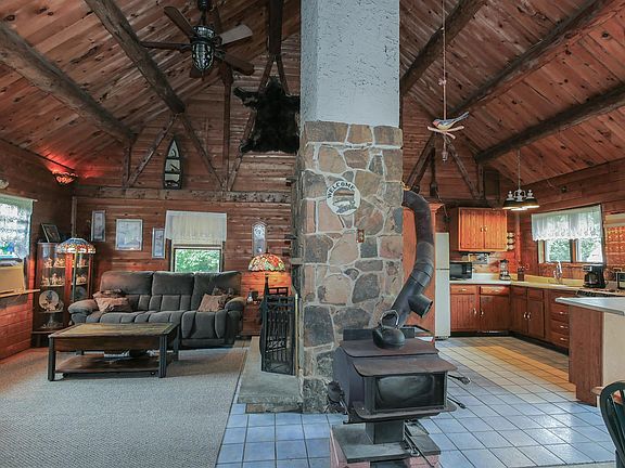 Rustic Log Cabin - Situated on almost 5 acres. Living room with wood burining fireplace, cathedral ceilings and open floorplan. Huge wrap around deck. Unfinished basement with lots of potential to finish into additional rooms. New roof in 2019, new well in 2018, water heater in 2023. Situated on almost 5 private acres (near English Creek). Being sold in "as-is" condition.