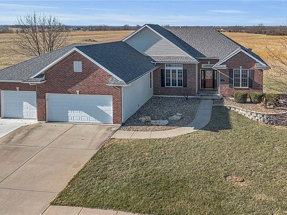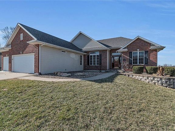 Luxurious Ranch Home with Stunning Countryside Views! Experience the perfect blend of elegance and comfort in this beautifully designed ranch home, offering just under 2,000 sq. ft. on the main level. Thoughtfully crafted with 2x6 construction, solid interior doors, and custom cabinetry, this home exudes quality from the moment you step inside. The main level features a spacious split-bedroom layout, including three bedrooms and two bathrooms. The master suite is a true retreat, boasting his and hers closets, a walk-in closet, and a lingerie built-in cabinet in the en-suite bathroom, complete with a separate tub. The kitchen and dining combo offers ample space for gatherings, complemented by a formal dining room for special occasions, leading to a generous living room perfect for relaxation and entertaining. Downstairs, the walkout basement expands your living space with a fourth true bedroom, a 5th non-conforming bedroom perfect for many uses including an office, gym, play room, etc. plus a third full bathroom, and a large family room. Additionally, you’ll find a fourth-car utility garage/workshop and a storm shelter for added security. Outdoor living is just as impressive, with a large deck, a walkout patio, and a covered porch in the back, all set against breathtaking southern views of the countryside. The property is finished with professional landscaping and a three-car garage, completing this exquisite home. Seller has made numerous updates including fresh interior paint, new HVAC, new hardwood upstairs, granite kitchen countertop and more! Call today to schedule your private viewing.