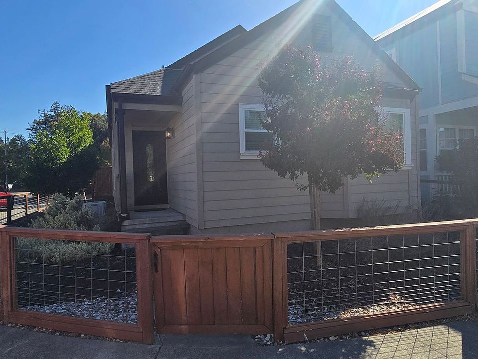 Welcome to this charming single story home in Santa Rosa, CA. This cozy 2 bedroom, 2 bathroom house features hardwood floors throughout, a single car garage, and a large back deck perfect for enjoying the California sunshine. The kitchen is equipped with stainless steel appliances, and a washer and dryer are included for your convenience. Natural light fills the space, complemented by ceiling fans to keep you comfortable year-round. 2" faux white blinds offer privacy and style, while heat and air conditioning ensure your comfort in any season. Don't miss out on this lovely home with all the amenities you need for a comfortable lifestyle.