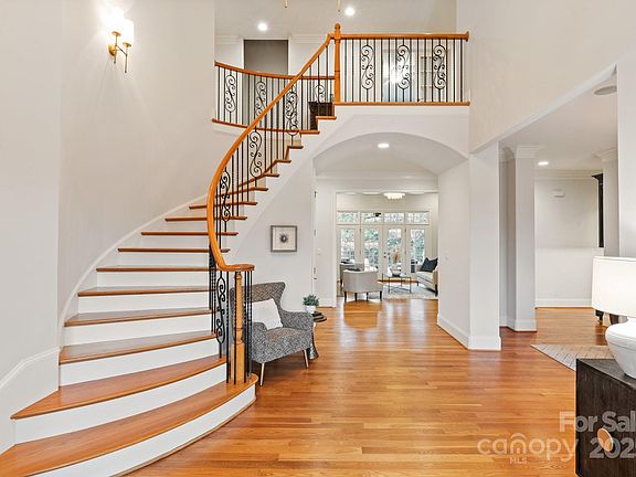 This estate sized home is nestled in the exclusive, gated Providence Downs South. The lot is professionally landscaped with pool, screened porch, terrace, fireplace and state of the art putting green. The pool was installed in 2023 and has all the modern luxuries! The main floor layout is ideal - Private office, large primary bedroom suite, kitchen/breakfast/family room all open, formal dining and formal living. This house is made for entertaining large groups! Wall of windows overlooks private backyard and pool. The home boasts 5 bedrooms and 6.5 baths. Every bedroom has an attached bathroom! Built ins throughout, beautiful ceiling details and updated lighting. The basement is an entertainer's dream with full bar and kitchen in addition to recreation spaces! 3 car garage and circular drive! Providence Downs South amenities include: clubhouse, olympic pool, lazy river, fitness center, basketball courts, tennis courts, volleyball, playground and neighborhood pond.