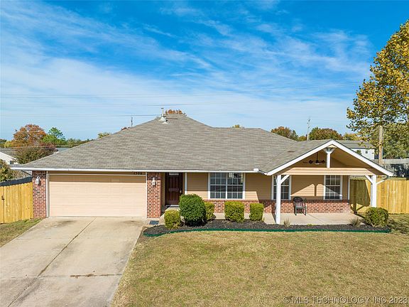 Ready to move in, 3 bed, 2 baths, 2 living areas, 2 car garage, split bedroom floor plan. Light and bright home. Some rooms repainted. New floor in kitchen, living, hand hallways, tile baths, newer front door, new garage door opener, new tub, attic storage, gas stove, appliances 2 years, Broken Arrow schools, newer toilets, large back yard, cul de sac, and more. Roof will be replaced prior to closing.
