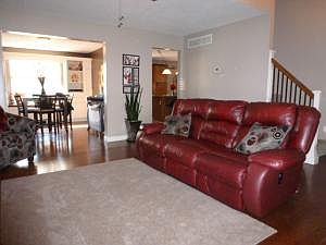 Spacious, traditional-style home with contemporary updates. Hardwood floors in main living area; beautiful built-ins and window seat in formal dining room; ceramic tile, updated counters and appliances in eat-in kitchen. Spacious master suite with walk-in closet. Custom-build deck overlooks large fenced yard with fire pit and brick patio. Backyard playhouse & storage area shelves do not convey