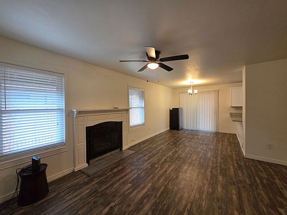 The kitchen comes equipped with sleek stainless steel appliances, while modern comforts like air conditioning, ceiling fans, and forced air heating ensure year-round comfort. A full-size washer and dryer are also included for your convenience. The master suite adds a touch of luxury with a spacious walk-in closet designed to meet all your storage needs.