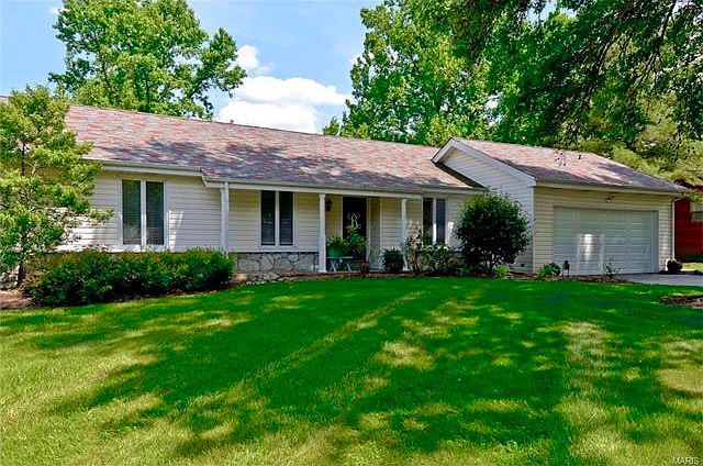 Chesterfield, Parkway West Schools! This updated 4BR, 3BA Ranch w/over 2300 sq ft of finished living space welcomes you home w/the updates you desire & more!!! Welcome home to new porch columns & new insulated garage door w/openers all in '16, architectural roof & beautiful landscaping! Gorgeous gourmet kitchen & breakfast rm boast refaced cabinetry w/roll-outs, granite counter tops, new sink, faucet, disposal, & new floors all between 2015 & 2016. The kitchen also offers a huge pass thru area w/buffet perfect for entertaining. There are warm tones throughout the MF complimented by 6-panel doors & all newer lighting. Vaulted GR offers newer flooring, floor to ceiling stone fp, & newer slider leading out to the deck overlooking the expansive, level, fully fenced yard! All 3 MF bdrms have newer flooring & both baths have been remodeled. The walk-out LL offers a 4th bdrm & remodeled bath as well as a spacious FR w/2nd fireplace & newer french doors walking out to the newer expanded patio.