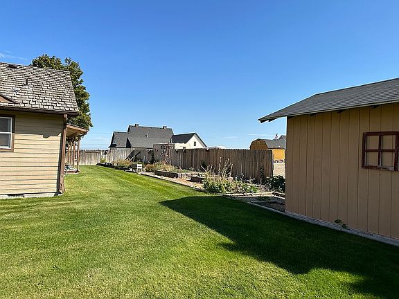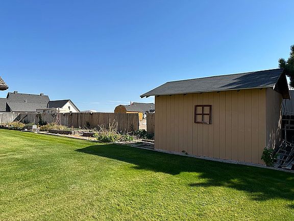- 3 bedrooms - large closets - 2 full bathrooms (one with large jetted tub), - den or office space - utility room - dining room - breakfast nook - formal living room - family room - natural gas fireplace - garden space - large fenced backyard - 10x14 storage shed - covered deck - shop space in garage - Air conditioning - underground sprinklers