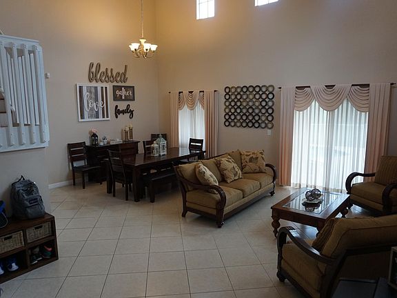 Exquisite 5BR/3 BA / 2 car garage home. This spacious home features lots of natural light in living room & formal dining room, volume ceilings, Oversized tile around first floor and laminate wood floors on staircase and upstairs. spectacular lake and pool view. Ample kitchen features eat in kitchen bar. Spacious bedrooms, wonderful master suite with his & hers walk-in closet and a gorgeous master bath with Roman tub. Enjoy your private sparkling pool, extended paved & fenced patio with a concrete barbecue. owners pays for a/c maintenance, pest control and pool