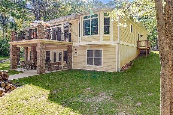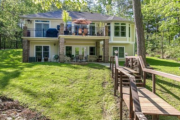 Your lakeside private retreat is just waiting for you! This home is airy, spacious and bright with great views of Lake Sara. The open great room and kitchen design features expansive windows with transoms, maple cabinetry with a center island, granite countertops, pull out shelving and stainless steel appliances. The Master suite located on the main level includes a gorgeous master bath with custom double bowl vanity, walk-in tiled shower and whirlpool tub. There are laundry hookups either in the garage for main level access or in the basement storage room. The walk-out lower level includes a family room with fireplace, two nice sized bedrooms and a full bath. The main level walks out onto a stamped concrete patio/deck and the lower level walks onto a covered concrete patio. All attached tvs stay EXCEPT the outdoor tv on upper level patio. Master TV which is not attached does not stay. Lighted walkway to covered boat dock. Steel seawall. Boat dock was rebuilt in 2016.