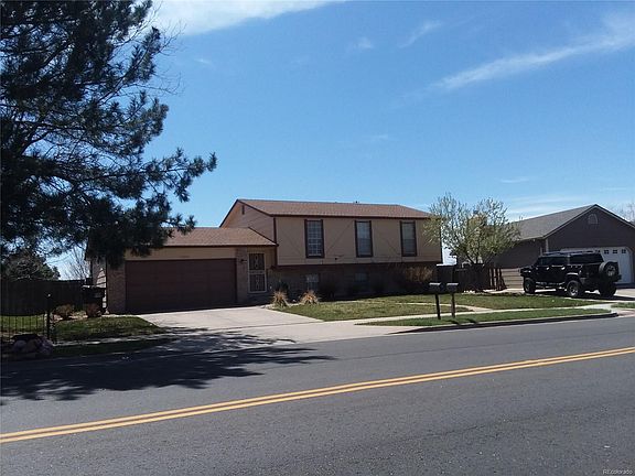 Wait until you see this yard! Almost a half of an acre. Walking track, basketball court, play area, patio. Mountain views. This one has a newer kitchen with granite countertops and stainless steel appliance. Master has French doors to deck. Lots of living space. $5000.00 carpet allowance. Close to shopping and bus route. Easy access to DIA.