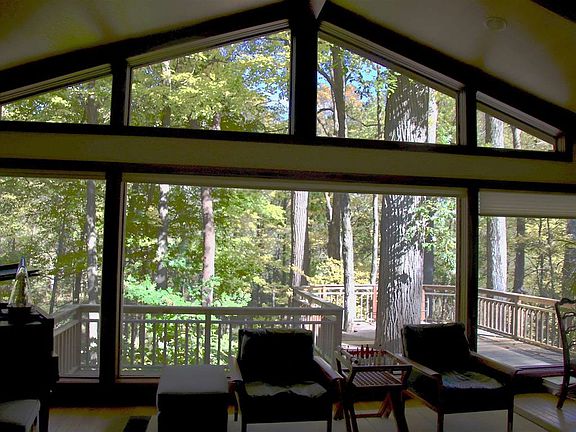 !! $35,000 Price Reduction !! Beautiful custom built home in a picturesque 14+ acre setting, nestled back in the woods overlooking Big Indian Creek. While you can shut the hustle and bustle of the world out by crossing over the bridge spanning the Aboite Creek and live in the stress free environment natures surroundings provide, you are only a few miles to the Southwest Allen County Schools complex, shopping at Village of Coventry, Time Corners and I-69. This stunning home offers expansive window views to take in the natural sunlight and all the views of the woods, nature and the creek. It also provides magnificent vantage points to view your 14(+) acres from large walk out decks that are accessible from the main first floor entertainment areas, as well as the private deck off the first floor master en suite. The home offers 2 bedrooms on the first floor, master en suite and a second bedroom, and an office/den. The center piece of the main 1st floor gathering areas is a beautiful stone double sided fireplace that reaches from floor to vaulted ceiling in the center of the home. A look to the exterior, from the living and dining rooms, out the floor to ceiling windows, provides breath taking views of nature that surround the home. Three bedrooms on the upper level, that are accessible from 2 different staircases from each end of the home, have more storage closets and rooms available on that floor than you have "Stuff" to fill them. The daylight lower level w/ possible Housekeeper bedroom complete with full bath also includes a room previously outfitted with commercial exercise equipment rivaling most private clubs, and a storage room. Large 3 car garage, fenced and gated property with security system is waiting for its 3rd owner. It's more than worth the look for buyers looking for an Aboite Township Oasis in the woods.