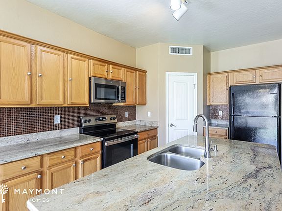 Monthly Recurring Fees: $20.00 - Smart Home $10.95 - Utility Management Maymont Homes is committed to clear and upfront pricing. In addition to the advertised rent, residents may have monthly fees, including a $10.95 utility management fee, a $25.00 wastewater fee for homes on septic systems, and an amenity fee for homes with smart home technology, valet trash, or other community amenities. This does not include utilities or optional fees, including but not limited to pet fees and renter's insurance. Welcome to this 4-bedroom, 2.5-bathroom home in Surprise, AZ, featuring a two-car garage and a welcoming covered front patio. With stylish finishes, a smart layout, and plenty of natural light, this home offers comfortable living in a great location. Step inside to find a bright front den with tray ceilings and windows that fill the space with sunlight. Continue into the heart of the home where you'll find the main living area, a spacious room with elegant tile flooring located just off the kitchen, perfect for relaxing or entertaining. The kitchen is a standout, featuring tile floors, oak cabinets, a large center island with the sink and space for counter-height barstools, light granite countertops, and a dark, stylish tile backsplash. This open-concept layout makes everyday living and hosting easy and enjoyable. The primary bedroom is a comfortable retreat with an ensuite bathroom, while the additional bedrooms are generously sized and share access to standard, well-appointed bathrooms. Step outside through the sliding glass door to enjoy the covered back patio, perfect for outdoor dining or relaxing in the shade. The backyard also features a lush grassy area, offering space. This home blends space, style, and convenience, don't miss your chance to see everything it has to offer. *Maymont Homes provides residents with convenient solutions, including simplified utility billing, a flexible rent payment option, and an affordable security deposit alternative. Visit our website or contact us for more details. This information is deemed reliable, but not guaranteed. All measurements are approximate. Actual product and home specifications may vary in dimension or detail. Images are for representational purposes only. Some programs and services may not be available in all market areas. Prices and availability are subject to change without notice. Advertised rent prices do not include the required application fee, the partially refundable reservation fee (due upon application approval), or the mandatory monthly utility management fee (in select market areas.) Residents must maintain renters insurance as specified in their lease. If third-party renters insurance is not provided, residents will be automatically enrolled in our Master Insurance Policy for a fee. Select homes may be located in communities that require a monthly fee for community-specific amenities or services. For complete details, please contact a company leasing representative. Equal Housing Opportunity. This property allows self guided viewing without an appointment. Contact for details.