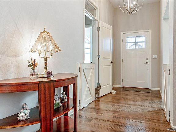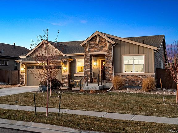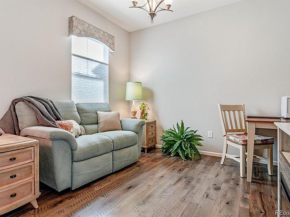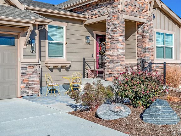 One of the best home sites in the neighborhood! This gorgeous ranch home is absolutely the perfect combination of open design, combined with flexible living space. As shown, there is a separate living room in the front of the home that can be used as a separate TV/sitting room, or used as a study/home office, and across the hallway are 2 bedrooms and full bath Stunning hardwood floors lead to the expansive family room with automatic window blinds, open to the gourmet kitchen, complete with huge center island & loads of gorgeous cabinetry, also with automatic blinds. The flowing design of this home makes for a perfect setting to gather friends and family, and no one misses the fun! The office - or dining room - is set off with beautiful sliding glass barn doors to add privacy for the office, or an intimate dining experience. The master, or primary suite, is also all hardwoods and very spacious to accommodate most any furniture. The full En Suite bath boasts a large shower, soaking tub, and dual vanities with slab granite counters. And for even more living space the basement has been partially finished with another TV/media area, game table room, space for your exercise equipment, and another bedroom and bath, perfect for guests. There is also wonderful extra storage that can be expanded into more living space if you desire. But perhaps the best feature is the expansive backyard, complete with covered patio with automatic sun shade, and extended patio with custom iron railing. This yard is truly an oasis, with beautiful trees, flowering bushes, and doesn't back right up to another home. Add to this a community pool, playground, and just minutes to shopping, commuting, Old Town Golden, golfing and so much more, and you have found the perfect place to call home!