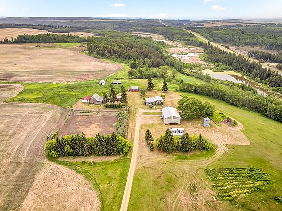 RARE OPPORTUNITY to own a wonderfully upgraded, modern, move-in ready family home on an amazing 40 acre hobby farm, just off Secondary 857 South of Hwy 28 in Smoky Lake County! BEAUTIFUL & PRIVATE SETTING! New septic tank & water conditioner, iron filter & reverse osmosis system (GOOD well) & Hot Water Tank (electric) in 2024. All new windows in 2023 - BSMT windows Dec 2025 NEW in 2023: Vinyl Plank Flooring, Paint & Ceiling, High Efficiency Furnace, Sinks & Toilets, Countertops in Kitchen & Bathrooms, Fridge, Stove, Dishwasher, Washer & Dryer. Roof was replaced in 2018 - aluminum shingles. 8 older farm bldgs include a barn, grain bin, some cool old bldgs & double garage. Huge 40 x 60 metal shop that's a pole shed w/ concrete floor & 100 amp power - 2 OH doors & 1 slider. Partly fenced, ~8 acres in crop, ~ 7 acres in yard / grass. Excellent access to Industrial Heartland (1 hr), Fort McMurray (3.5 hrs), Christina Lake (2.7 hrs), Edmonton/Sherwood Park (1.5 hrs) *COUNTRY LIVING AT ITS FINEST!