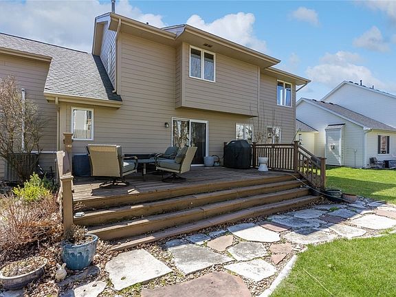 Introducing this desirable two-story nestled within the highly sought-after Country Club West development in Clive. Boasting 5 bedrooms, 3.5 bathrooms, and a generous 3-car garage, this well maintained home offers a blend of comfort, functionality and an abundance of natural light. Main floor has an inviting entrance with a sitting area to the right (check out the one-of-a-kind light fixture) AND an office to the left. Seamless flow to the open concept living space with a cozy fireplace, and built-ins. Eat-in kitchen has a slider door to the deck/ open backyard. Second floor you'll find 3 spacious bedrooms, a primary bedroom with an en suite/dual vanities, soaking tub, shower, and a walk-in closet. The lower level was completed in 2021 and has 9 foot ceilings, an additional bedroom/bathroom, and a family area with a wet bar. Perfect for hosting gatherings or providing a private retreat for guests/teenagers. Updates include roof, HVAC, water heater, finished basement, New LVP with baseboards/trim, updated light fixtures and much more! $3000 allowance with acceptable offer towards any upgrades. Location is hard to beat- close to Greenbelt Trail & Park.