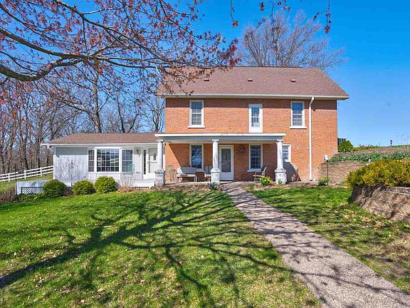 This beautiful brick home is nestled into the hillside on +/- 19 acres of timber pasture that features mature trees, a stocked pond, and located on a county maintained dead end road. The setting is picturesque and has multiple out buildings, L-M Schools, and could be combined with an adjacent 77.86 acres that is also selling. The 1860's era home features 4 BR, 2 BA, walk out basement, living room with gas fireplace, eat-in kitchen, and is move-in condition. Don't miss your opportunity! Subject to survey.