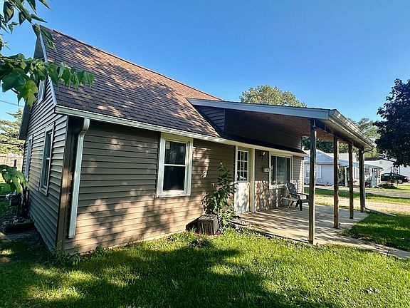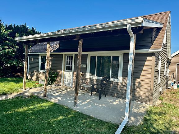 This nestled back 2-bedroom, 1 bath home is ready for you to spruce up and make your own! Some vinyl floors throughout. Appliances stay. Siding, windows, and roof were done 10+ years ago. Concrete patio in front and back. Two-car garage for all your toys. Fenced in yard. Great rental or starter home. Sold as-is.