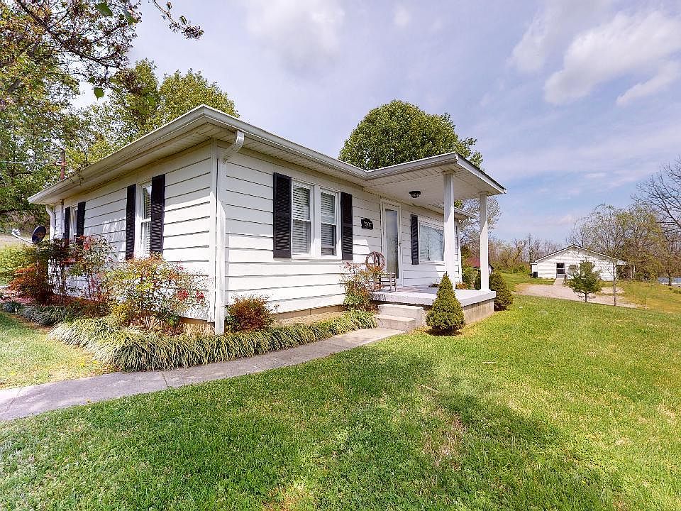 Check out this super cute and cozy home located just outside the Leitchfield city limits on HWY 259! This 2 bed 1 bath home has been completely remodeled and full of character along with modern farmhouse finishings. Inside this 882+/-sqft home you will find gorgeous hardwood flooring, eat in kitchen (appliances remain), living room with electric fireplace, large bedroom with two closets (one large walk-in), adorable bathroom with shiplap, laundry closet (washer and dryer remain) and an additional bedroom. Outside features gorgeous landscaping, 1.7+/- acres, 2 car carport, out building shed, and a fulling functional salon with a bathroom! (Salon chair does not remain) This place is very well maintained and ready for a new owner!