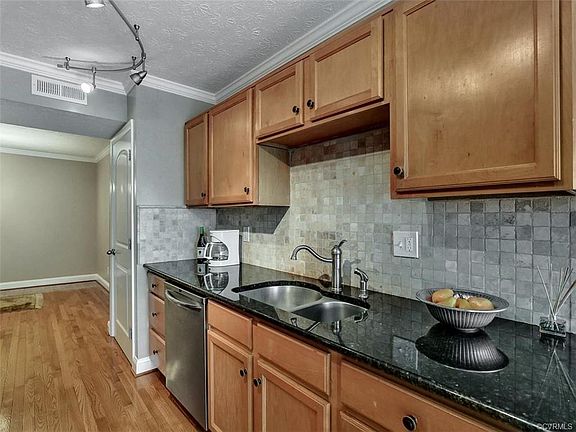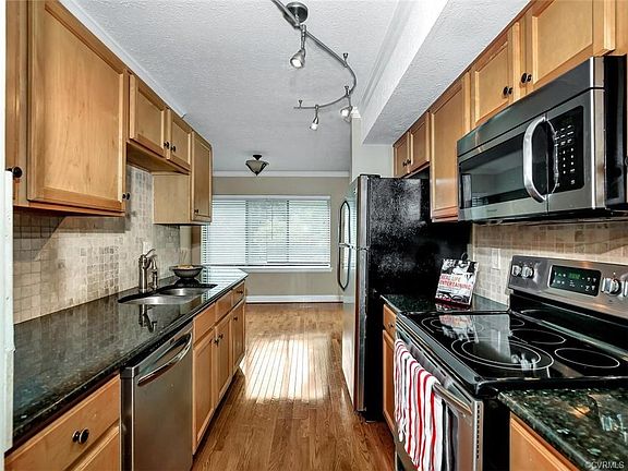 Don't miss this beautifully renovated condo in the Regency Woods Community now available! The eat-in kitchen has updated cabinets, granite counters, stainless steel appliances, modern fixtures, and beautiful hardwood floors that carry throughout the living and dining room as well! All rooms are accentuated with crown moldings! The balcony easily accessible from the living room overlooks the wooded area behind the community for lovely outdoor enjoyment! Both full baths have been updated! The carpeted Master bedroom has a walk-in closet and private ensuite bath with walk-in tiled shower, tile floor and tall vanity! The hall bath has a tub/shower combo with tile surround, tile floor, tall vanity and closet with stack washer/dryer for in-unit laundry! Additional bedrooms are also carpeted with good closet space and nice natural light! The Regency Woods Community is conveniently located near shopping, restaurants, I-64 and Gaskins Rd, and features great amenities, including community pool, clubhouse, tennis courts, dog walking stations, and playground! Monthly HOA fee includes water, sewer, trash removal, exterior maintenance, landscaping, building insurance, pool lifeguards and more!