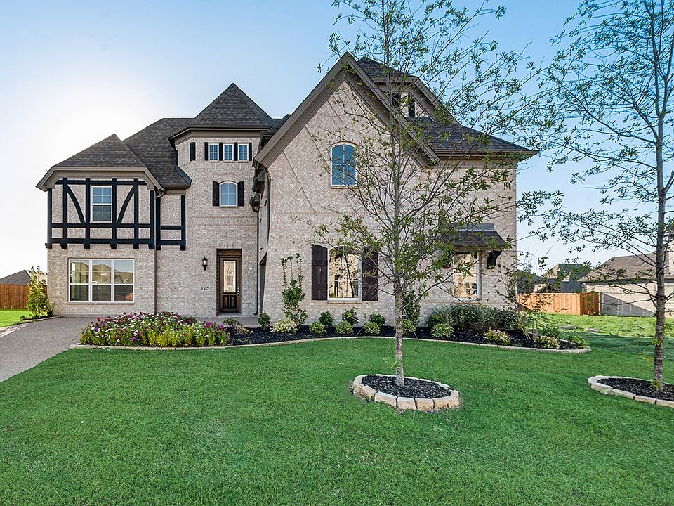 New Grand Home in Monterra - master plan neighborhood w swimming pool, splash pad, trails, park & pickleball courts! Sought after Rockwall schools. Gorgeous home on east facing lot 3 blocks to pool & pickleball. Spacious 5 bedroom home has 4 large livings - formals, open family room with 2 story fireplace & dry bar - Gameroom & Media Room. Downstairs Guest Suite or Home Office. Security Camera wiring. Gourmet kitchen has large island with Omegastone slab tops & waterfall ledges & pendant lights, Shaker cabinets, full bowl sink, stainless steel appliances, 5 burner gas cooktop, & walk in pantry. Custom features include 8 foot doors, free standing tub in Primary Bath, frameless glass shower w tile, & large walk in closet. Upstairs Gameroom & Media Room or Playroom. Plush landscaping with stone edged flower beds. Convenient location w lots of shopping & dining options near Lake Ray Hubbard. Energy Star Partner w R38 & tankless water heater.