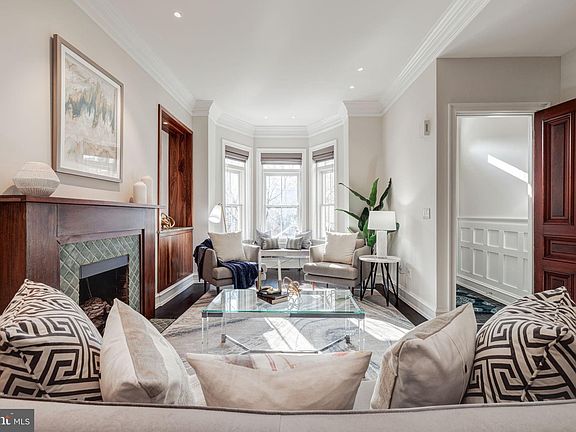 FABULOUS NEW LISTING! Gloriously maintained 1875 end-unit Victorian on prime verdant block in coveted Logan Circle. A perfect pairing of modern conveniences and thoughtful historic preservation. Main level: 10+ foot ceilings, recessed lighting, ebonized oak floors, entry foyer, bay window 35 foot living room with wood burning fireplace featuring Pewabic Pottery tile, custom Brazilian hardwood cabinets, separate dining room, updated kitchen w/ new marble floor & backsplash, quartz countertops, stainless Café appliances & pantry. Upper level: oak floors, primary bedroom suite with en-suite updated bath offering large vanity & frameless glass shower, washer & dryer; Second bedroom shares marble bath with third bedroom/office with custom built-ins leading out to terrific terrace. Lower level: Unfinished with opportunity to add significant value and utility to this magnificent home. Partial green roof & solar panels (owned free & clear). Electric bills averaged $24.13 per month in 2022! Notable architectural details include several original carved wood doors, updated historic-conforming energy-efficient windows & glass doors, custom Michigan solid cherry hardwood front door, board & batten mouldings, crown mouldings. This home features off-street parking for up to two cars. Advertised floor plan square footage and official square footage differ; seller makes no specific representation as to the square footage of the property.