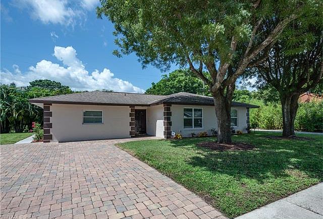 BEAUTIFULLY AND COMPLETELY RENOVATED 2+den 3 bath, 1503 SF, in the desirable Downtown McGregor Corridor. New HIGH END wood kitchen cabinets with under cabinet LED lighting. New granite counter tops and stainless steel appliances. New Smooth surface cooktop with DESIGNER hood vent with adjoining BREAKFAST BAR. Tile throughout the interior. This home has a WIDE OVERSIZED PAVERED driveway suited for 4 cars. It has a side entry for the DEN/OFFICE. Come enjoy this established neighborhood that is close to Edison Park Elementary and Allen Park Elementary and Fort Myers High School and Lee Memorial Hospital AND DOWNTOWN RESTAURANTS. This corner lot has mature trees and hedges on property line for privacy and loads of room for a pool or adding a garage. THIS IS MOVE IN READY!!!