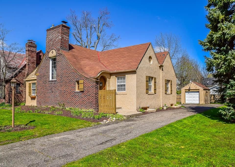 Call or text Listing Agent Jose Medina at 330-605-9185 for a private showing. Architecturally unique 3 bedroom historic "cottage" on a double lot with a private drive! Built in 1925, this home beautifully preserves its character while including modern conveniences. Classic English influence in the foyer with an arched door leading to the jaw-dropping great room boasting cathedral ceilings, thick mahogany beams and a wood burning fireplace. Original hardwood floors and original hardware on all solid wood doors! Archways to the dining room which opens to the updated kitchen with new stainless steel appliances, tile backsplash and beautiful cabinetry. Tiled sunroom and office addition on the side of the house for extra living space. There are 2 bedrooms and a full bath down the hall with built-in linen storage. A third bedroom can be found at the back of the house - perfect for a guest space with 2 closets (1 cedar lined). Tons of storage and space designated for a half bath in the incredibly clean basement! Updated electric, too! Outside, there's a 1-car garage and a lovely deck overlooking the huge, shaded and partially fenced yard. Convenient location near the Pro Football Hall of Fame, Mercy Medical Center and Taggart's Ice Cream! Home warranty included for buyer's peace of mind. Don't miss out - schedule a private showing today!