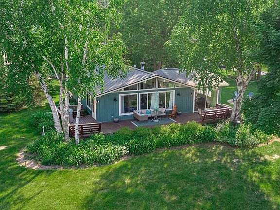 It's all about that Lake! The ideal lakehouse right across the road from the beach and lodge. Tremendous unobstructable water views. Three bedrooms, two full baths (one new in 2019) , eat in kitchen and separate dining room/ family area.  Wood burning freestanding fireplace. Newers include furnace and AC 2019, roof 2020, slider patio door 2019, stove, stack washer and dryer, she shed. Great sightlines, comfortable living room with lots of natural light. 41' Lakeside deck. Fire pit area. Furnishings and golf cart negotiable.