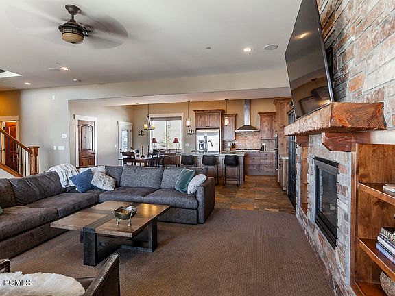 - Exterior features: Adjacent Common Area Land, Architecture Style: Mountain Contemporary, Attached, Ceiling Fan(s), Deck, Double Vanity, Fire Pressure System, Fire Sprinklers, Floor Covering: Stone, Flooring: Stone, Garage Door Opener, Gas, Gas Dryer Hookup, Gentle Sloping, Granite Counters, Heating system: ENERGY STAR Qualified Equipment, Heating system: Zoned, Heating: Gas, Hike/Bike Trail - Adjoining Project, Hose Bibs, Kitchen Island, Landscaped - Partially, Laundry Room, Main Level, Management, Media System - Prewired, Native Plants, Open Floorplan, Pantry, Patio, Roof Type: Asphalt, Smart Thermostat, Smoke Detector(s), South Facing, Storage, Tankless Water Heater, Taxes, Upper Level, Vaulted Ceiling(s), View Type: Lake, View Type: Mountain(s), View Type: Ski Area, Walk-In Closet(s), Washer Hookup, Water Softener Owned