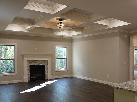 If you're looking for complete privacy this is the home for you!The long winding driveway brings you to this super popular design & the finishes of an elegant custom home with split bedrooms, nine foot ceilings & a very open spacious floor plan. The great room has coffered ceilings with crown molding trim, natural gas log fireplace, hardwood floors in every room and a spacious kitchen with granite countertops and an abundance of cabinetry including a nice walk-in pantry. Formal dining area to enjoy family gatherings. Natural gas HVAC, public water & fiber optic internet services available. Hardwood flooring in all rooms and ceramic tile in the wet areas. Master BR has trey ceilings, huge walk-in closet, private bath, double vanities with a extra large walk-in tile shower room with elegant glass doors. Lots of crown molding, custom built wood shelving in all the closets and pantry. Sun room overlooking the private yard. Encapsulated crawlspace with a dehumidifier. Call to see!