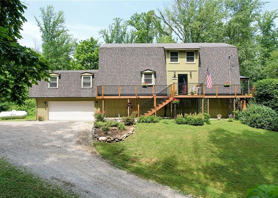 Welcome home to your immaculate, private and peaceful 3.1 acres nestled in the woods. This completely updated home has 3 beds and 2 full baths with the master on the main level and 2 bedrooms upstairs. Features are endless. The living room opens up to 1 of 2 decks with an amazing outdoor living space where you can drink your morning coffee under the gazebo and watch the wildlife. The 2nd open deck is adjoined to the pool. The grounds include many perennials as well as a walking path and a fire pit. The fully furnished basement with waterproofing and insulated walls is ready for the football game and plenty of space for your game room. Included is a 2 car attached garage plus 2 mini barns. All this and only 4 minutes to I-70.