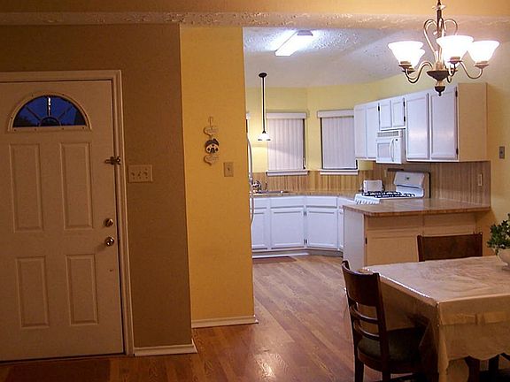 Open Concept living. Seller put New Hardi-board on Front of Home & New paint on outside of home.Some up-dated lighting and ceiling fans.Kitchen nice counter space & laminated Wood look flooring.Family-room has Fireplace!Bedroom down,has closet & access to back yard,offers New wood look vinyl flooring. Master Bed/Bath down,offers Private Patio area,double sinks,full mirrored closet doors.One full Bath/One Bedroom Up.Gameroom Up/maybe bedroom walk in closet.Square ft. estimated!COME TAKE A LOOK!