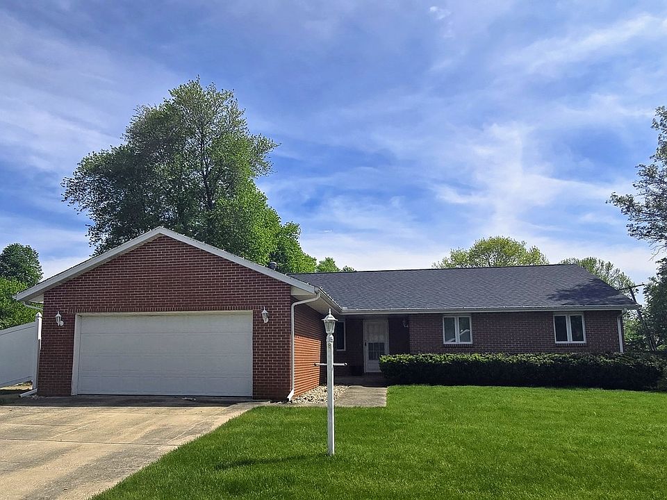 Nice and clean ALL BRICK ranch home on a larger corner lot. Check out the side portion which is ready to be fenced all around to the other side. Features a spacious Eat In Kitchen with island bar and all appliances. XL Living room that could double as a dining combo if desired. There are 3 bedrooms and 2 baths. One is a bedroom suite with dual sinks. Separate laundry off the garage, complete with a utility sink and washer/dryer. Oversized 2 car garage. Quaint patio off to the side on the cul de sac portion. Great location and ready for next owner.