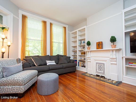This brick 4-5 bedroom, 2.5 bath Victorian is well maintained and move-in ready for its next owners! Renovated and updated over the past 24 years by the same owners, it has just had a kitchen makeover with new countertops, cabinet hardware and sink. There is a convenient first-floor laundry, a wonderful covered back porch with access through the kitchen, and courtyard-like privacy, with several mature plantings in the backyard. The light infused living and dining rooms, complete with gorgeous millwork, pocket doors and built-ins. This home's mid block location and two-car garage give the yard and environment, a unique serenity. The access in and out is wonderful, as this part of the alley is only accessible to a few homeowners. Upstairs, the bath will have 2 new seamless Corian sinks , Corian counters, and new fixtures. Other amenities include beautiful hardwood floors (many refinished) as well as other recent updates: roof replacement and relined box gutters (2019), gas water heater (2022), 3rd floor AC (2020); and motor replacement of 1st Furnace (2024).