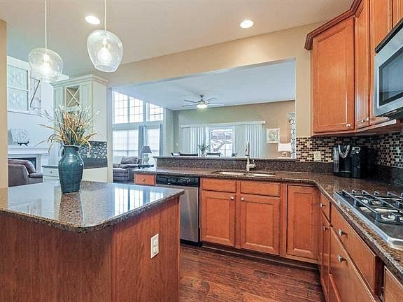 AMAZING STORY 1/2. 4 BEDROOMS, FINISHED LL, 3 CAR GARAGE, READY TO MOVE RIGHT IN. This beautiful home is loaded. Custom kitchen with 42" cabinets w/crown molding, double convection oven, upgraded garbage disposal, solid surface counters (Cambria) & breakfast bar plus additional coffee bar/cabinets for entertaining. 18 ft entry foyer and great room and 9 ft ceilings on main level. Master bedroom offers enough space for everything you might want or need plus master luxury bath offers separate tub and shower, double bowls and plenty of storage space and closets. The breakfast room/hearth room has a gas fireplace in additional to the great room gas fireplace. The main floor is hand scraped hickory hardwood and the lower level is hand scraped birch hardwood. The lower level has a wet bar, full bathroom, plenty of storage, and family room for entertaining. The back yard has aluminum fencing, patio and deck with pergola plus an irrigation system. Garage is a 3 car oversized garage.