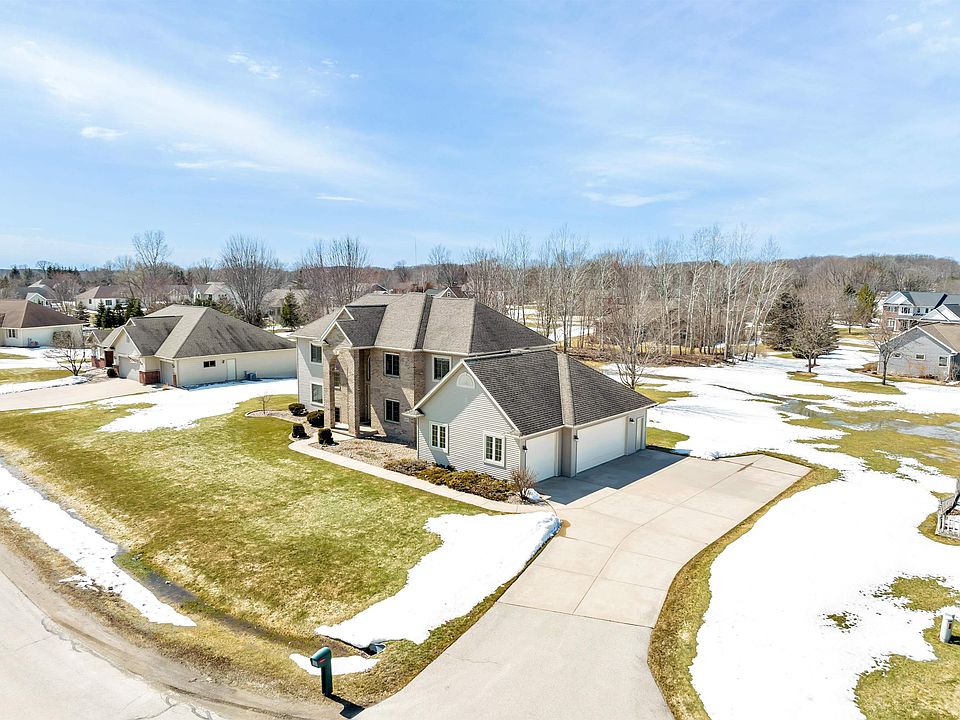 Custom-built four-bedroom home located in a great neighborhood. This impressive home features a gorgeous kitchen with granite counters, tiled backsplash, hardwood floors, stainless steel appliances and a big walk-in pantry, a sun-filled living room with a gas fireplace and a wall of windows overlooking the big back yard, a formal dining room, an office, a family room a half bath, and a first floor laundry. Upstairs delivers the large primary suite with a huge walk-in closet, and a private bath that includes dual vanities and a jacuzzi tub. There are three more generous sized bedroom and another full bath on the second level. The unfinished lower level offers room to expand and is stubbed for another bath. The home is located on a cul-de-sac lot in a subdivision with easy highway access.