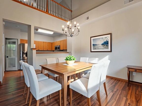Stunning & Modern 2 BR/3 BA Townhome with Soaring 21 ft Vaulted Ceilings in the Living/Dining Area! Features a sleek breakfast bar, spacious loft, convenient upper-level laundry, and a private master bath. Freshly painted with brand-new stainless steel appliances, plush carpeting, and luxurious LVP flooring throughout. Enjoy the inviting concrete front patio—perfect for relaxation. Absolutely gorgeous—a must-see gem!