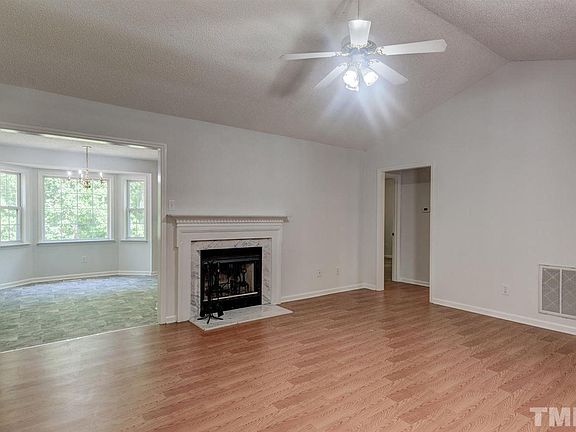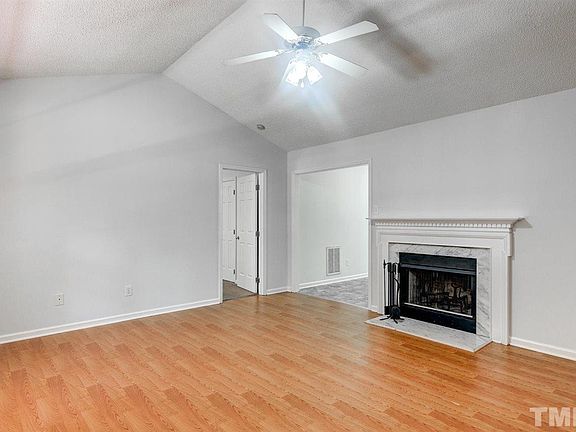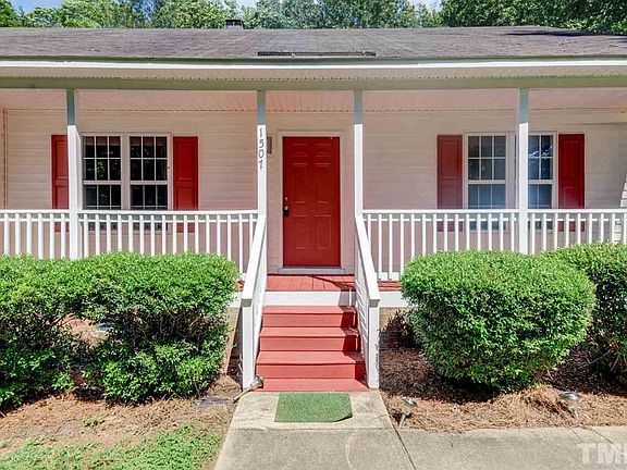 Charming ranch home on 1.63-acre cul-de-sac lot. Split bedroom floor plan has spacious living room features a cathedral ceiling & wood burning fireplace. Light & bright eat-in kitchen w/stainless steel appliances & plenty of cabinets for storage. Large master bedroom has cathedral ceiling, walk-in closet & private bath w/dual vanity. deck and rocking chair front porch. Detached storage shed. New HVAC, water heater, dishwasher & stove-2015. Minutes from Downtown Raleigh, I-40, shopping & dining.