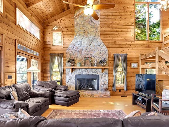 The mountains are calling on this one! Long Range Views all around!! True stacked Log Cabin in prestigious My Mountain Subdivision.Only less than 10 miles to downtown Blue Ridge. Meticulously maintained cabin is fully furnished, Huge kitchen with granite countertops and tons of cabinets, large laundry room, floor to ceiling fireplace, stainless appliances, screened porches, stacked stone fire pit area, Separate pull under carport, 2 car basement garage, & real cedar T&G thru whole house. New Metal roof, custom blinds, all new beds, Lots of storage in this house.Beautiful loft bedroom overlooking the great room, separate loft office/game room area. This cabin is perfect for a vacation rental investment.Must see this cabin to appreciate it's beauty and the love the owners have put into it. This one will go quickly. Floor plan is very open and you also have room to easily finish out the rest of the basement if needed. Highest & Best Offer deadline by Sunday 5pm