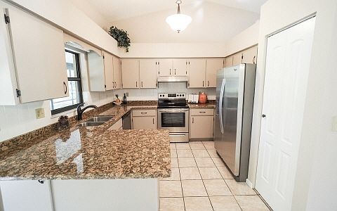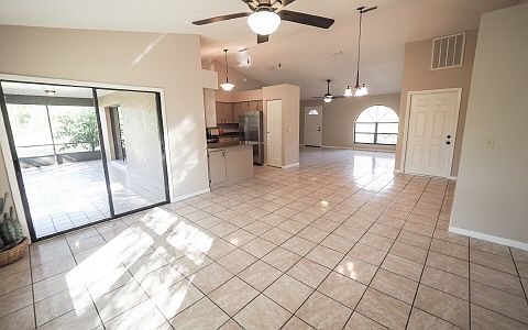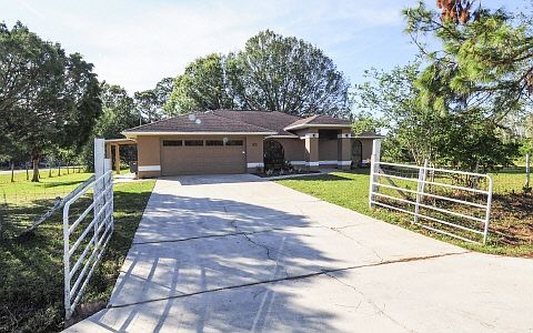 Looking for a home with some acreage - this one is sure to please. Sprawling 3 bedroom, 2 bath, split floor plan home nestled on a large 2.11 Acre corner parcel of land. Property is fenced and gated. Spacious floor plan with a living room and a family room. Beautiful granite kitchen with stainless steel appliances and a pantry! Kitchen has a window over the sink overlooking the backyard. Both the master and the family room feature a sliding door to the tiled screen porch with backyard access. Tile floors throughout - no carpet anywhere. Master bedroom has private granite on-suite with his and her sinks and dressing/vanity area. Jacuzzi tub and large walk in closet. Two guest bedrooms and another granite guest bath. Attached 2 car garage houses the laundry area. Covered side entry on garage and covered and tiled front porch entry too. Covered picnic area.