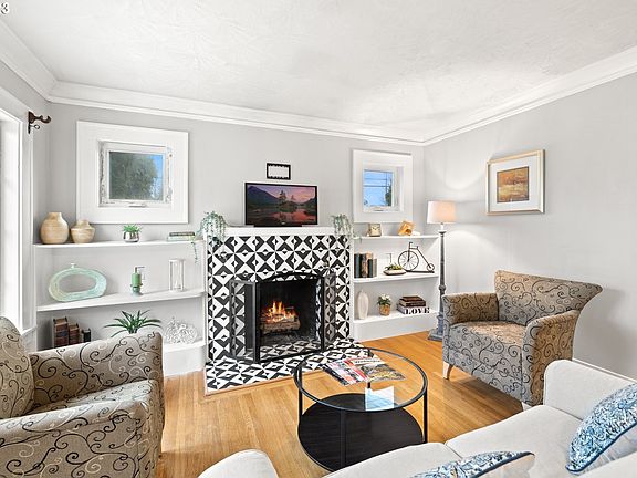 This Charming bungalow is ready and waiting for the next owners to love it. Enjoy tons of natural light throughout. Main level has original solid oak floors in bedrooms and main living area. The period charm of beveled glass - wood pane windows, wood burning FP that is tastefully tiled, multiple built-ins including shelving that flanks the fire place, spice rack & bench seat table in kitchen to enjoy morning coffee while you watch the world go by & dresser drawers in south end bedroom closet. Soft close features were added to original lower kitchen cabinets and drawers; keeping the period look with modern convenience. The primary bedroom has a generous walk-in closet & is attached to the Jack-N-Jill bathroom. The south bedroom has an attached play/reading room. It's closet can be accessed both from the bedroom & attached room. There is a full unfinished basement with a work bench & separate room with foam soundproofing. The attic area could be finished for a multitude of uses. Driveway & attached garage offer great parking options plus it is wired & ready for EV charging with a 100amp 240V box. The home is a stones throw from the popular New Deal Cafe, a short stroll to parks, shopping and close to everything in the Hollywood District. Easy access to 205 & I-84. Don't miss out on this one! It's cute as a button! Open Sat 12/9 & Sun 12/10 from 1-3pm. See you there!