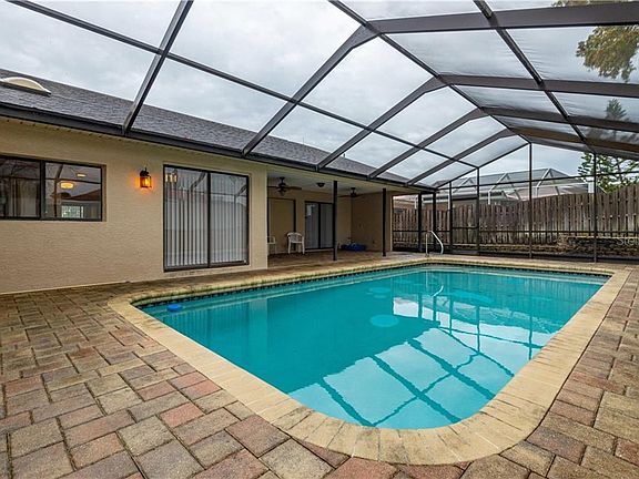 One or more photo(s) has been virtually staged. Gorgeous open floor plan and soaring cathedral ceilings! Fantastic Spring Hill pool home with newer laminate floors in the bedrooms, neutral gray interior paint throughout and a Huge pool and backyard. The lanai has Pavers and the Diamond bright finish in the pool looks terrific!ll This Home would be a wonderful option if you need to have an in law suite with a Split floor plan and 3 FULL BATHS. The community is golf cart friendly. Newer Samsung refrigerator and lots of cabinet space in the kitchen. We look forward to you seeing this spacious, well cared for home! Repaired sinkhole. Fully insurable. All documents available.