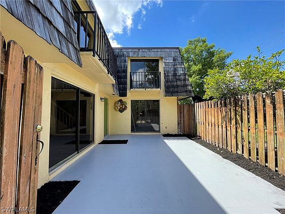 Do not miss this updated two-story, two-bedroom, two-bathroom townhome located in Fort Myers. Upon approaching the unit, you'll be greeted by a spacious fenced courtyard perfect for lounging/entertaining, a perfect place for a family barbecue after a leisurely swim in the community swimming pool!. New Roof makes for years of worry free & maintenance free living! The kitchen highlights white wood cabinets that combines with a white appliances including a new refrigerator and granite countertops. First floor has a guest bathroom with washer and dryer located within the unit. Second floor has two spacious bedrooms with dual vanities in the upgraded master bathroom. Other upgrades include tile throughout, bedrooms have their own private terrace overlooking the courtyard, and much more. Private assigned parking for 2 is located steps from the door. This is a must see for your customers. Pets allowed, restrictions apply.