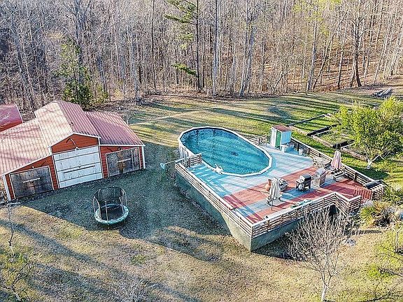 This stunning 24.5-acre property is perfect for those seeking peace and connection with nature. Mature fruit and nut trees canvas the landscape, creating a feast for both your eyes and taste buds. Deer and turkey are frequent visitors, adding to the serene atmosphere. Unwind in the hot tub, gather around the crackling fire pit, or cool off with a refreshing dip in the above-ground pool. The property also includes a barn and metal building for storage or hobbies, while two screened-in porches offer the perfect spots to relax and soak in the natural beauty. Inside, hardwood floors flow throughout the home, leading to a luxurious master suite complete with a fireplace, private screened porch, exceptionally large walk-in closet, and spacious bathroom. The large kitchen with island and pantry provides ample space for culinary creations. This property is more than just a house; it's a lifestyle change, offering an escape from the everyday and a chance to embrace peace and serenity.