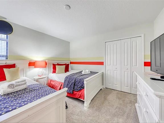 Fantastic income producing vacation rental property with history of vacation rentals - ask your Realtor for the vacation rental history of this home. Excellent west facing pool 'corner' or 'end' lot with no immediate neighbor to north side of property and not immediately overlooked from the rear - one of the best lots on the community. The home features high quality furnishings including themed star wars bedroom, garage games room and huge movie media room with giant projector screen. This home is ready to go. Ask your realtor for more information today. Buyers are advised to verify all information contained within.
